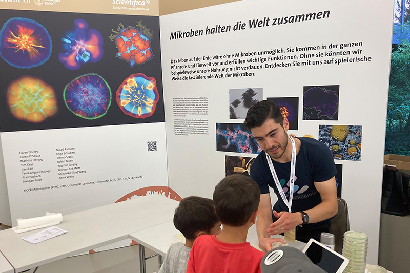 Scientifica: Zurich science days. 2021 and 2023 saw the latest instances of "Scientifica," Switzerland's largest science fair in which ETH Zurich and the University of Zurich open their doors to curious scientists of all ages. As part of an exhibition by the NCCR Microbiomes consortium, Alan engaged with members of the public on the roles microbes play in our daily lives: from "good" vs "bad" bacteria in our guts, to the societal implications of modifying microbiomes for biotechnology applications.